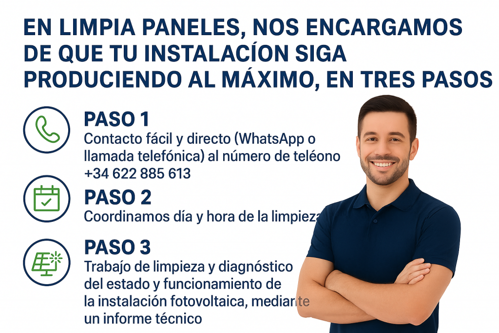 La limpieza de placas solares no se puede hacer en cualquier momento del día; es recomendable y muy importante hacerla temprano por la mañana o al final de la tarde para evitar dañar los paneles por cambios bruscos de temperatura. Limpiar durante las horas de máxima insolación puede causar evaporación rápida del agua, dejando manchas, y es peligroso por el calor de los paneles.